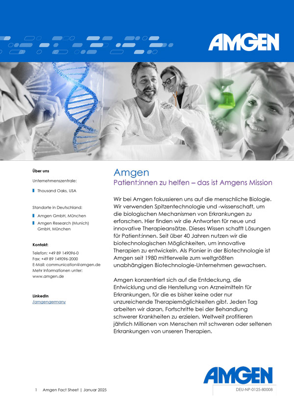 Wir sind Expert:innen der Biotechnologie: Informieren Sie sich zu Amgen global und in Deutschland.